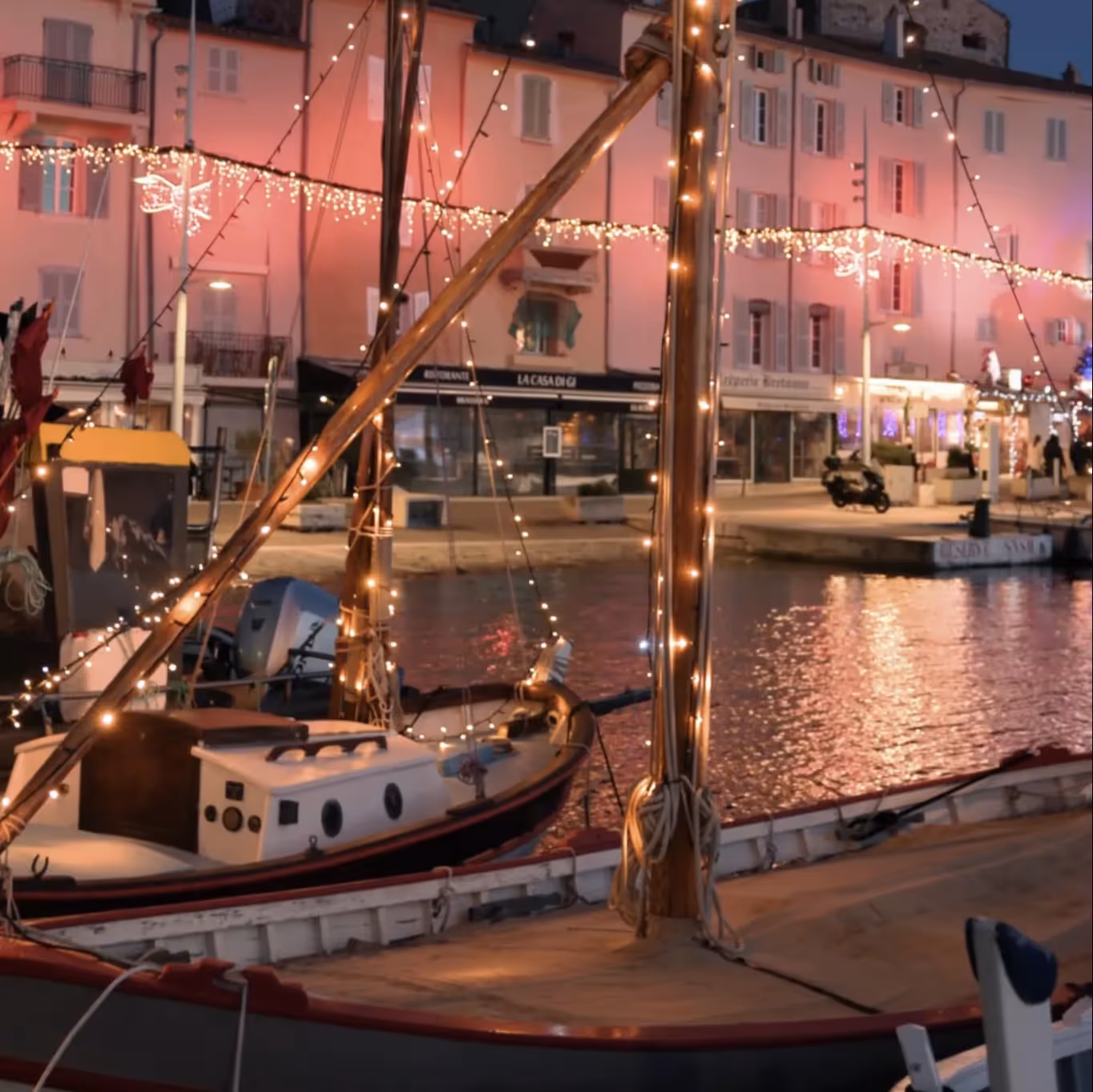 In December, Saint-Tropez dons its brightest attire, with dazzling lights bringing its streets, port, and squares to life for the holidays. Saint-Tropez’s Christmas illuminations are a highlight of the season, turning every corner of the town into a glowing spectacle. The Place des Lices, typically a bustling hub, becomes even more magical with strings of lights draped across its iconic plane trees.
