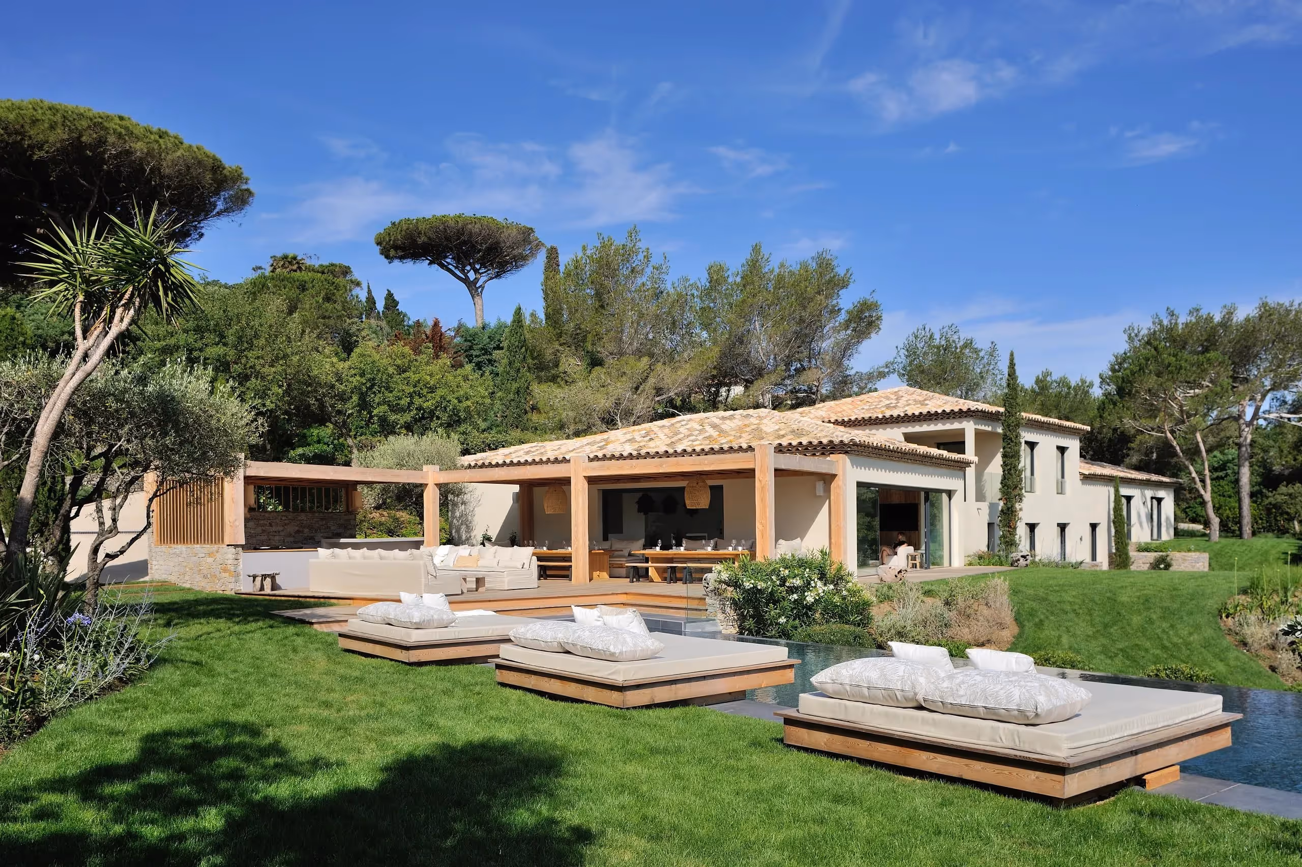 Progettata per ospitare fino a 18 persone, la villa dispone di nove ampie camere da letto, ciascuna con lussuosi bagni privati. Che si tratti di vacanze in famiglia o viaggi con gli amici, questa prestigiosa proprietà garantisce un soggiorno indimenticabile in un'atmosfera elegante e accogliente. Le ampie e luminose zone giorno si aprono su una terrazza panoramica che vanta una vista mozzafiato sul Mar Mediterraneo. Questo spazio tranquillo invita al relax e alla convivialità, fondendo luce naturale, fascino provenzale e design moderno. All'esterno, la villa offre una piscina riscaldata di 17 metri, perfetta per essere goduta tutto l'anno. La cucina all'aperto completamente attrezzata con un barbecue di alta gamma crea l'ambiente ideale per cenare all'aperto. Gli ospiti possono anche usufruire del campo da bocce dedicato, mentre gli appassionati di sport apprezzeranno l'accesso diretto a un campo da tennis all'interno della tenuta. La posizione eccezionale di Villa Lava bilancia perfettamente tranquillità e comodità: a soli 3 minuti a piedi dalla spiaggia e a 8 minuti dal vivace centro di Saint-Tropez, potrete godervi appieno il rinomato stile di vita della Costa Azzurra senza compromessi. Prenotate oggi stesso il vostro soggiorno a Villa Lava e concedetevi un'esperienza straordinaria dove il lusso discreto incontra la vita mediterranea.