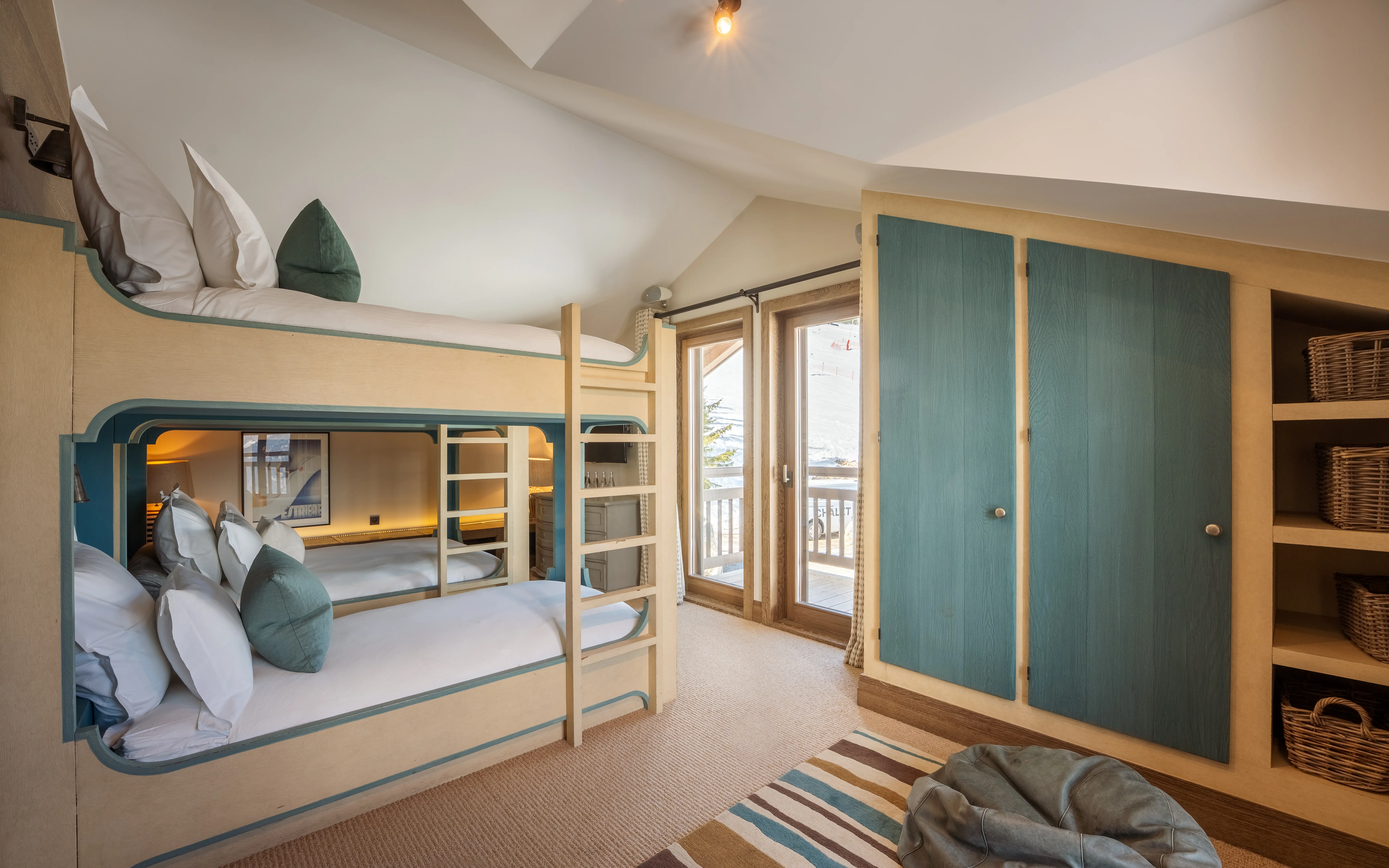 The chalet offers five en-suite bedrooms, including a bedroom specially designed for children with four single beds, making it ideal for families. Dedicated to well-being and comfort, the property is equipped with high-end wellness facilities, including an indoor swimming pool, sauna, hammam, jacuzzi, massage room and fitness room. An elevator completes this prestigious property, which perfectly combines luxury, comfort and an exceptional location in Courchevel 1850 luxury real estate.