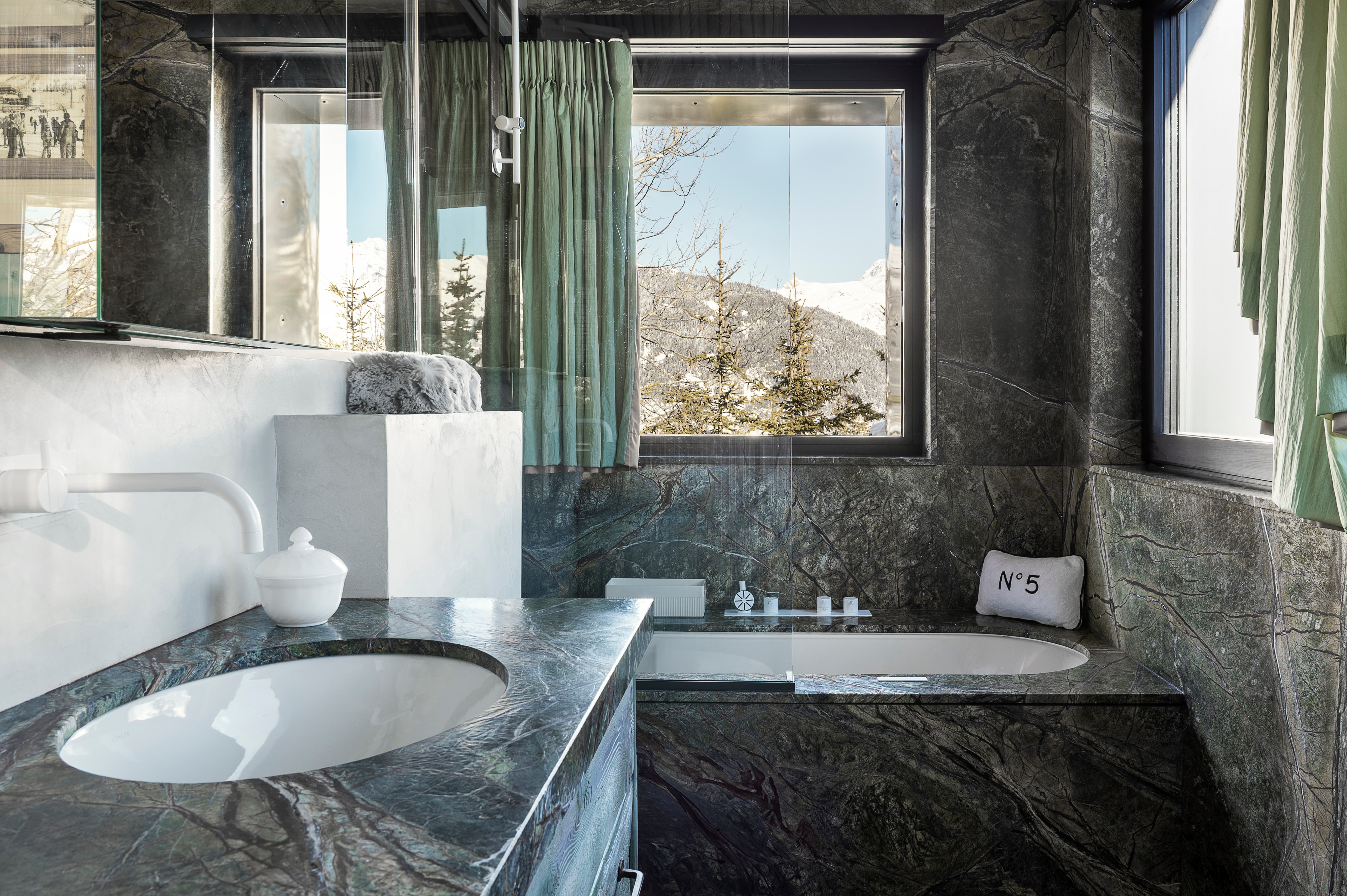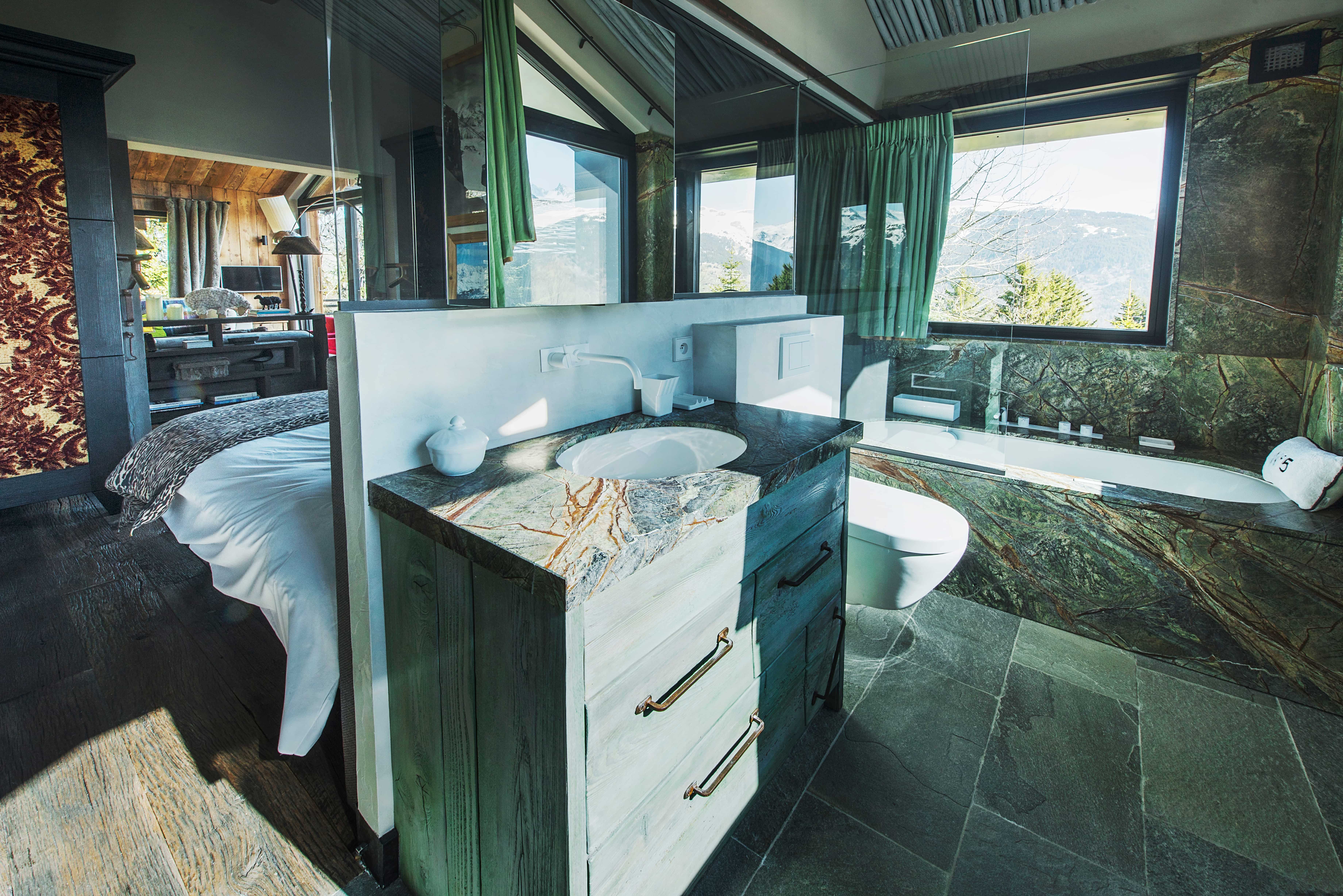 The chalet includes a master suite with dressing room and bathroom featuring a whirlpool bathtub, plus two en-suite double bedrooms on the garden level, each with a dressing room and private bathroom (shower-hammam and bath-shower). A TV lounge that can be converted into an extra bedroom and a dedicated massage area complete the interior. Outside, enjoy a heated outdoor swimming pool, a south-facing terrace, and private parking spaces, including one covered. Ideal for a luxury ski holiday in Courchevel, Chalet Ilulissat perfectly combines comfort, wellness, and alpine elegance in an exceptional mountain setting.
