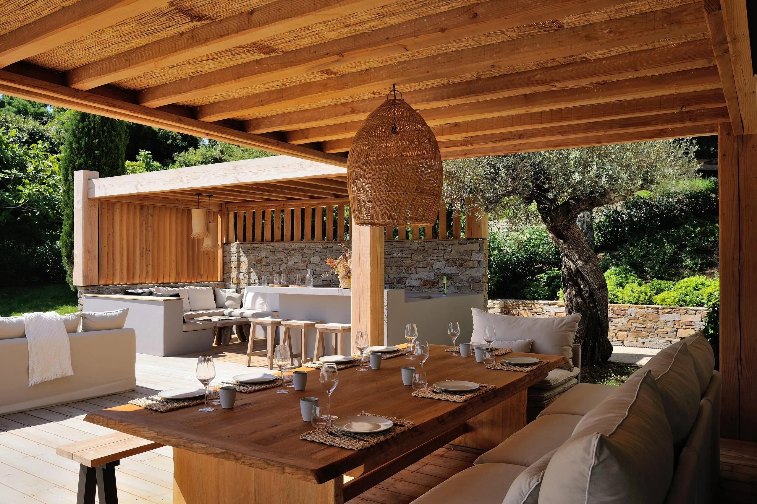 Designed to accommodate up to 18 guests, the villa features nine spacious bedrooms, each with luxurious en-suite bathrooms. Whether for family vacations or trips with friends, this prestigious property guarantees an unforgettable stay in an elegant and welcoming atmosphere. The expansive and luminous living areas open extensively onto a panoramic terrace boasting breathtaking views of the Mediterranean Sea. This tranquil space invites relaxation and togetherness, blending natural light, Provençal charm, and modern design. Outside, the villa offers a 17-meter heated swimming pool, perfect for year-round enjoyment. The fully equipped outdoor kitchen with a high-end barbecue creates the ideal setting for alfresco dining. Guests can also enjoy the dedicated petanque court, while sports enthusiasts will appreciate direct access to a tennis court within the domain. Villa Lava’s exceptional location perfectly balances tranquility and convenience: just a 3-minute walk from the beach and 8 minutes from the lively center of Saint-Tropez, you can fully enjoy the French Riviera’s renowned lifestyle without compromise. Book your stay at Villa Lava today and indulge in an extraordinary experience where discreet luxury meets Mediterranean living.